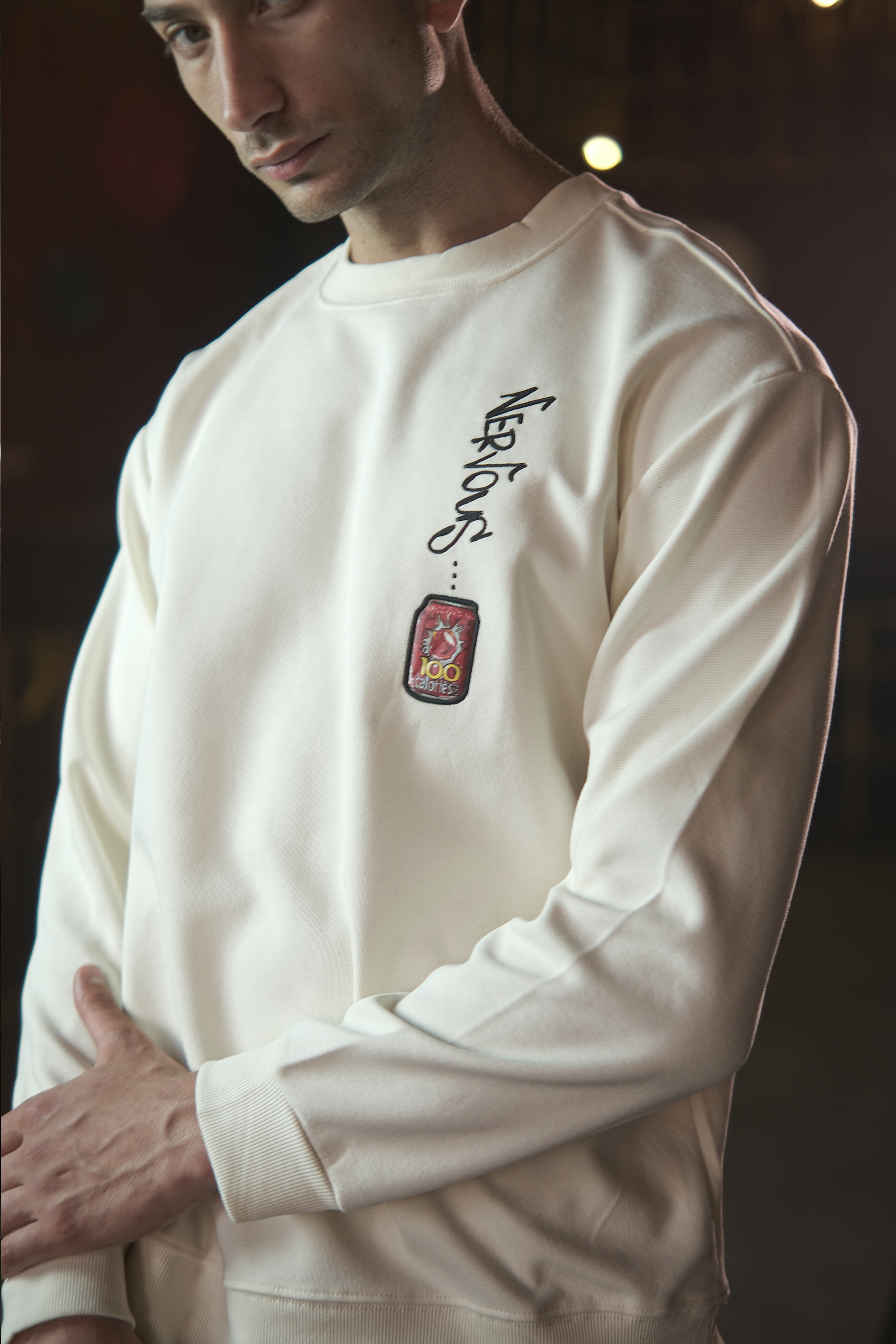 Off White Cotton Rib Jersey Printed Sweatshirt For Men